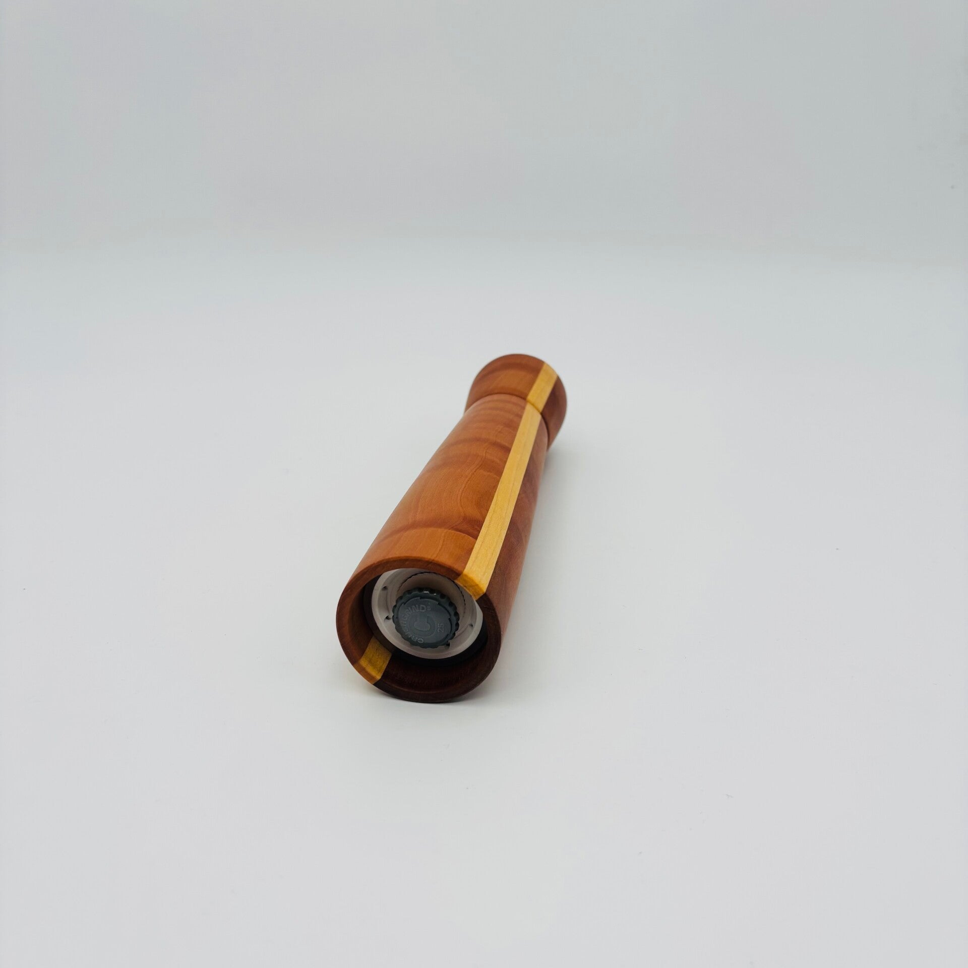 Zout- en pepermolen, handgemaakt van peren- en esdoornhout. De molen heeft een moderne uitstraling. In deze molen zit een keramisch maalwerk van ChushGrind. Hierdoor gaat het lang mee. Dit maalwerk is geschikt voor zout en peper.